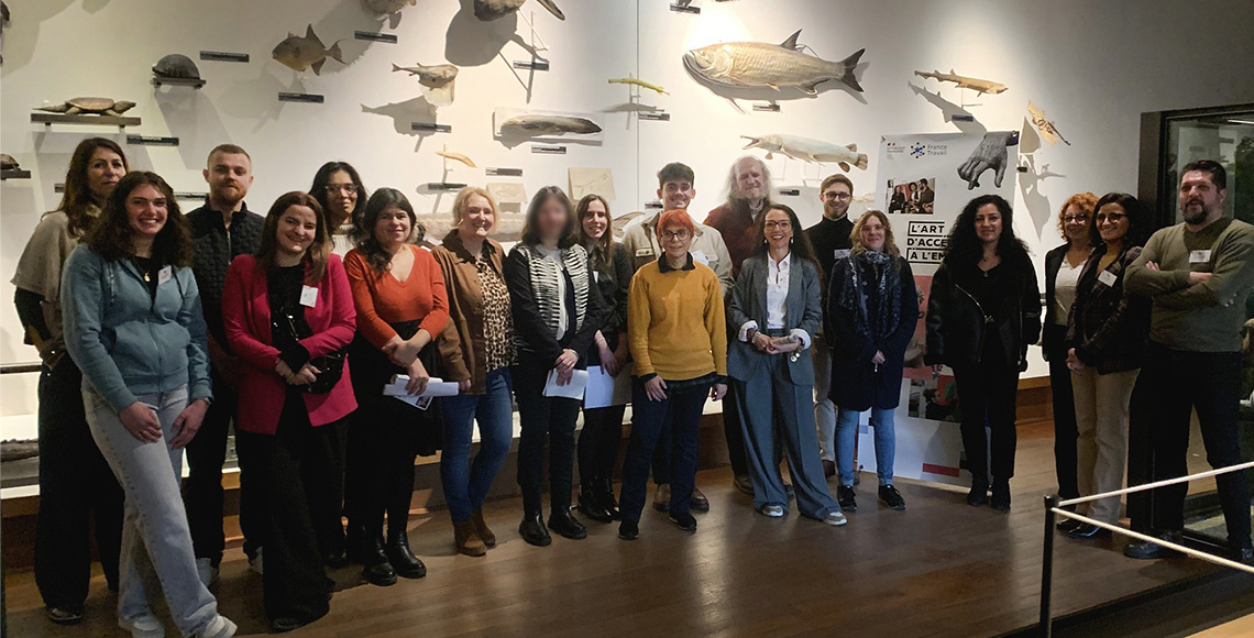 «Je n’étais pas forcément convaincu au départ quand ma conseillère m’a proposé de participer à ce dispositif» avoue Théo, jeune docteur en neurosciences et en physiologie, en recherche d’emploi. Aujourd’hui, avec Roland, Lou, Marion, Angélique, Anaïs, Christine, Elyn, Pascale, Angélique, William et Emeline, il endosse le costume de médiateur culturel et scientifique pour jouer les guides dans les allées du musée entre les aquariums des galeries Nautilus et Calypso, les vitrines d’insectes et les animaux spectaculaires de la galerie de zoologie. Chacun présente en situation son animal ou insecte choisi au petit groupe formé des candidats, recruteurs et représentants de France Travail. Le poisson licorne pour son profil atypique et anthropomorphique, la méduse pour sa grâce, ou encore la libellule pour le cœur qu’elle forme avec son conjoint en période de reproduction, ils ont 5 mn montre en main pour captiver l’auditoire et se dévoiler un peu. Théo n’a pas choisi le diodon par hasard : «C’est un poisson doté d’un incroyable système de défense avec des neurotoxines. C’est un peu mon domaine, les neurosciences, du coup, ça me permet de parler de mon métier qui n’est pas très loin de la médiation scientifique puisque j’en ai fait pas mal durant ma thèse». Emeline quant à elle va nous emmener devant la vitrine du putois et des furets. Avec humour, elle parle d’un animal qu’elle connait très bien puisqu’elle avait une furette comme animal de compagnie. Dans la lumière tamisée du musée, les candidats jouent les guides et les recruteurs prennent des notes. «Tout compte : la prestance, l’assurance, la posture... Au-delà du CV, on perçoit tout le savoir être des personnes. C’est une expérience totalement bluffante» s'enthousiasme Véronique Lucas, responsable commerciale à l’Afpa.