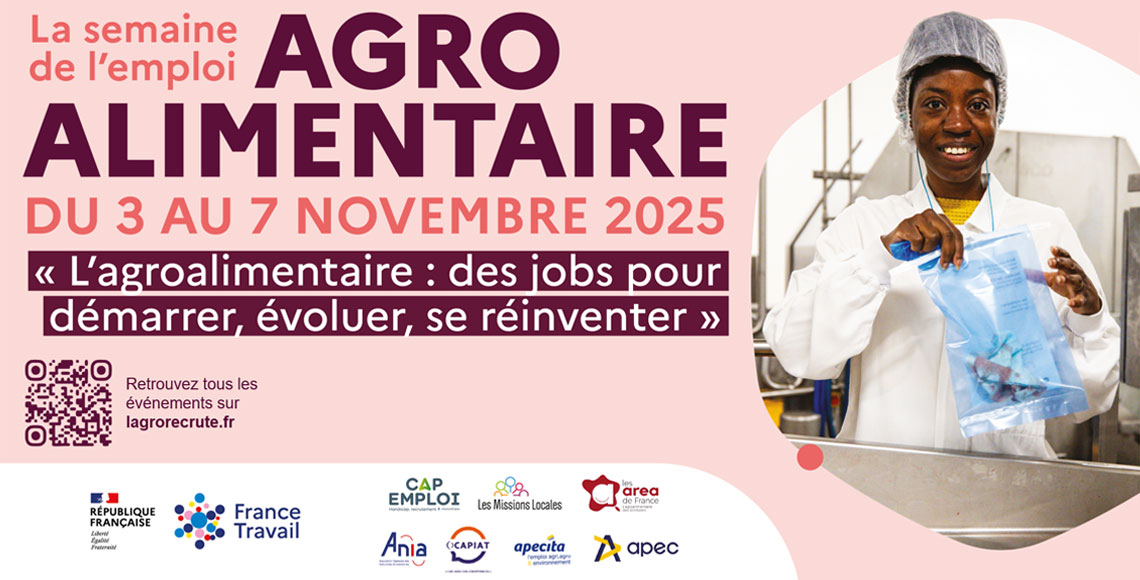 Du 3 au 7 novembre 2025, la 5e édition de la Semaine nationale de l’emploi agroalimentaire mettra à l’honneur un secteur clé pour l’économie régionale et nationale. Coorganisée par France Travail et l’AREA Nouvelle-Aquitaine, en partenariat avec l’IFRIA Nouvelle-Aquitaine et Ocapiat, cette édition proposera plus de 80 événements sur l’ensemble du territoire régional. Objectif : valoriser les métiers et les savoir-faire de la filière agroalimentaire, faire découvrir ses nombreuses opportunités de carrière et favoriser la mise en relation directe entre entreprises et candidats.