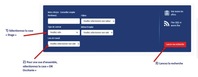 Nos offres de stage sont publiées par département.